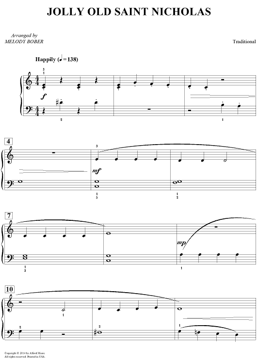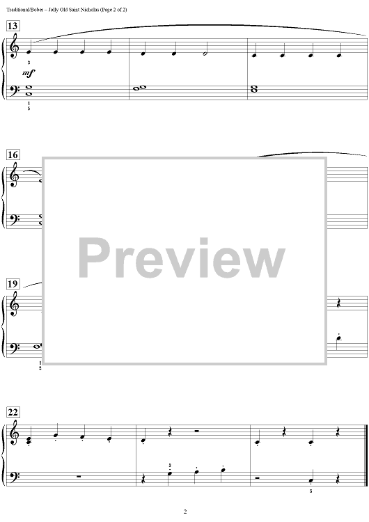 Digital Sheet Music for Jolly Old Saint Nicholas by Traditional, Melody Bober scored for Piano; id:459910