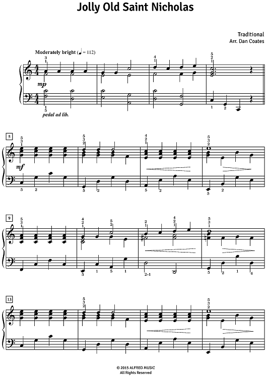 Digital Sheet Music for Jolly Old St Nicholas by Dan Coates, Traditional scored for Piano Solo; id:501191