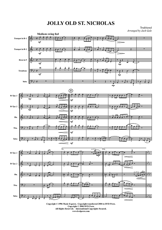 Digital Sheet Music for Jolly Old St. Nicholas - Score by , Traditional, Jack Gale scored for Brass Quintet; id:411912