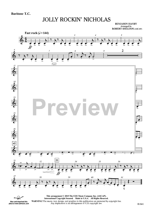 Digital Sheet Music for Jolly Rockin' Nicholas - Baritone TC by Benjamin Hanby, Robert Sheldon scored for Concert Band; id:455168