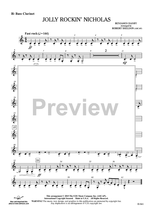 Digital Sheet Music for Jolly Rockin' Nicholas - Bb Bass Clarinet by Benjamin Hanby, Robert Sheldon scored for Concert Band; id:455160