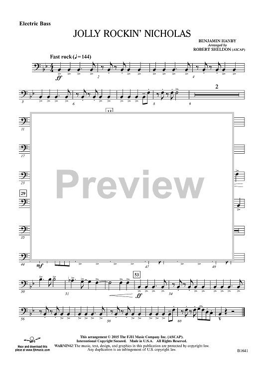 Digital Sheet Music for Jolly Rockin' Nicholas - Electric Bass by Benjamin Hanby, Robert Sheldon scored for Concert Band; id:455170