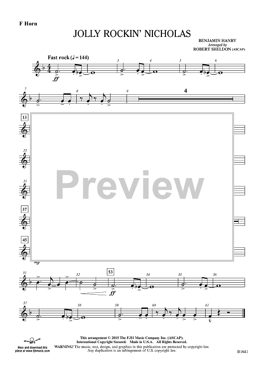 Digital Sheet Music for Jolly Rockin' Nicholas - F Horn by Benjamin Hanby, Robert Sheldon scored for Concert Band; id:455165