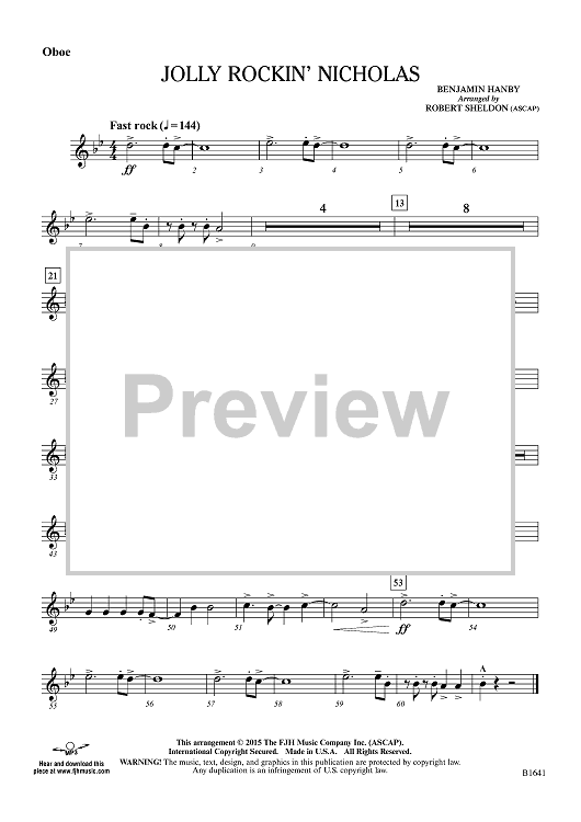 Digital Sheet Music for Jolly Rockin' Nicholas - Oboe by Benjamin Hanby, Robert Sheldon scored for Concert Band; id:455156