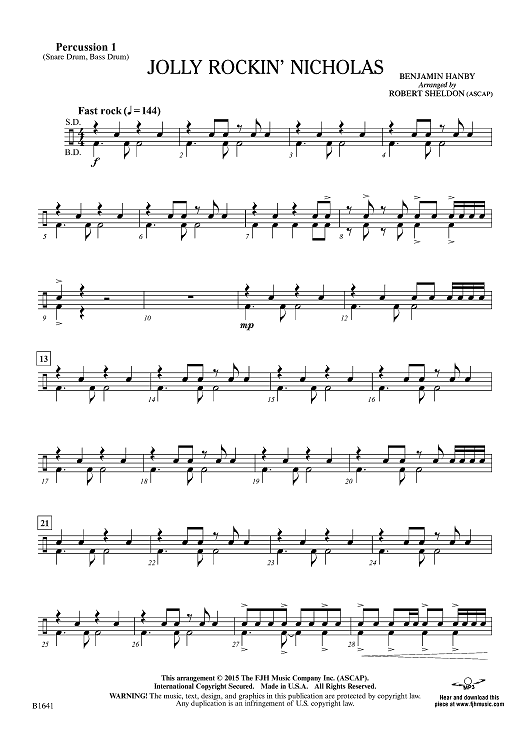 Digital Sheet Music for Jolly Rockin' Nicholas - Percussion 1 by Benjamin Hanby, Robert Sheldon scored for Concert Band; id:455172