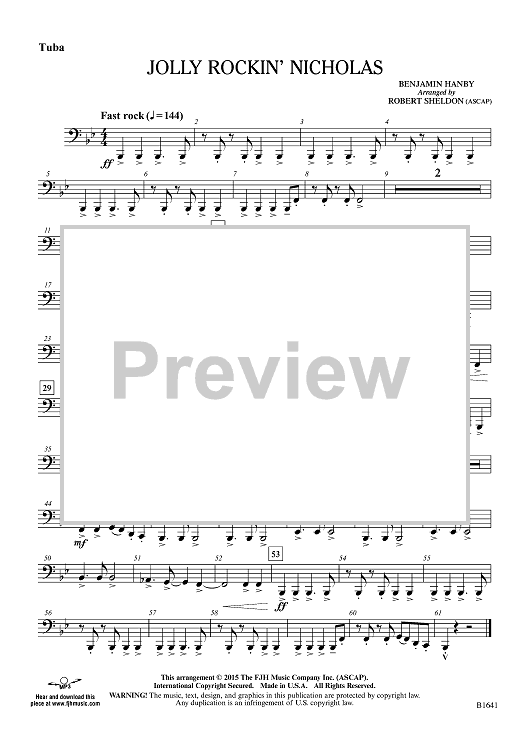 Digital Sheet Music for Jolly Rockin' Nicholas - Tuba by Benjamin Hanby, Robert Sheldon scored for Concert Band; id:455169