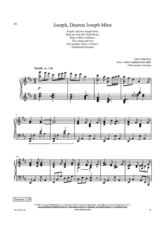 Digital Sheet Music for Joseph, Dearest Joseph Mine by Larry Shackley, German Melody scored for Piano Solo; id:434548