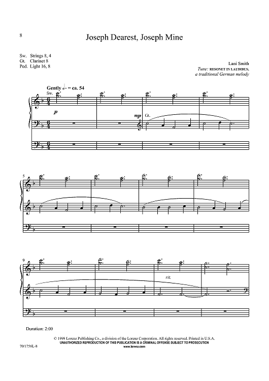 Digital Sheet Music for Joseph Dearest, Joseph Mine by Traditional German Melody, Lani Smith scored for Organ Solo; id:436709