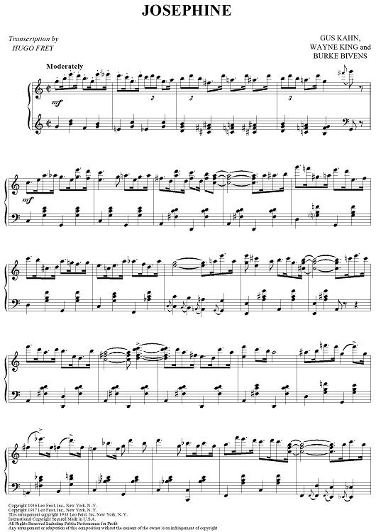 Digital Sheet Music for Josephine by Gus Kahn, Hugo Frey, Wayne King, Burke Bivens scored for Piano Solo; id:427667