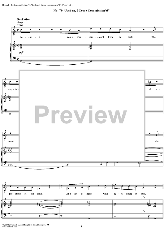 Digital Sheet Music for Joshua, Act 1, No. 7b "Joshua, I come commission'd" by George Frideric Handel scored for Vocal Score; id:308840