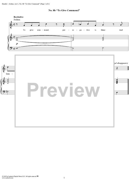 "Joshua, Act 1, No. 8b "To give command"" Sheet Music by George Frideric Handel