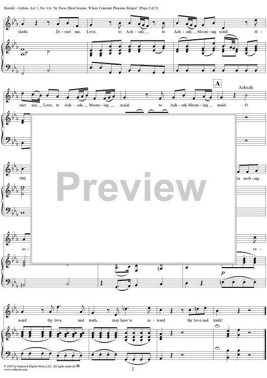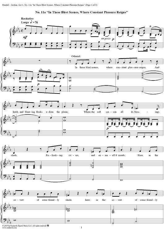 "Joshua, Act 1, Nos. 11a "In these blest scenes, where constant pleasure reigns"" Sheet Music by George Frideric Handel