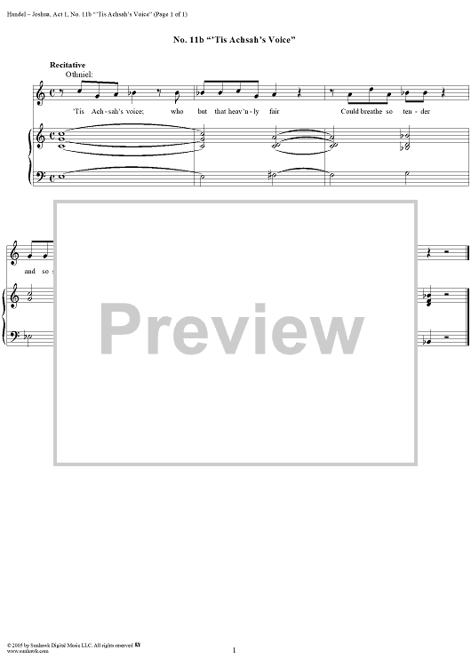 "Joshua, Act 1, Nos. 11b "'Tis Achsah's voice"" Sheet Music by George Frideric Handel