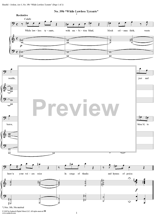 Digital Sheet Music for Joshua, Act 3, Nos. 39b: "While lawless tyrants" by George Frideric Handel scored for Vocal Score; id:310629