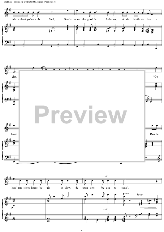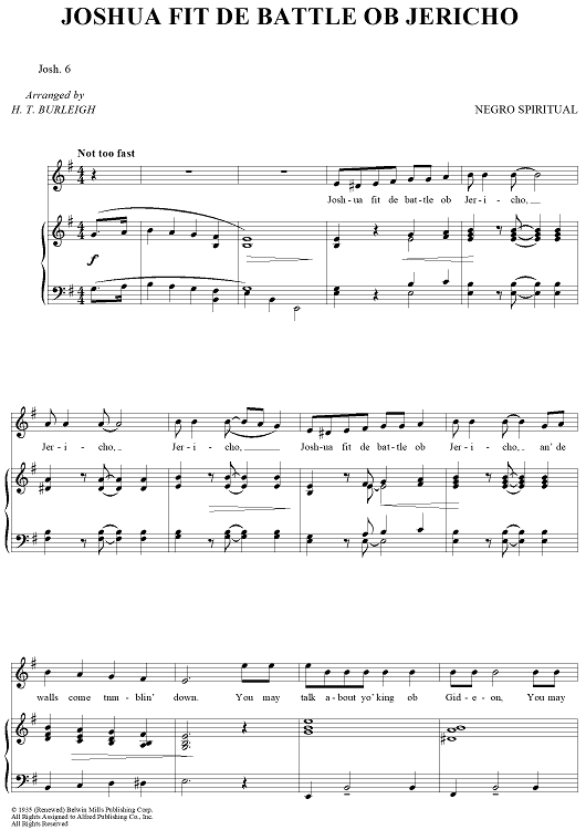 "Joshua Fit De Battle Ob Jericho" Sheet Music by African American Spiritual