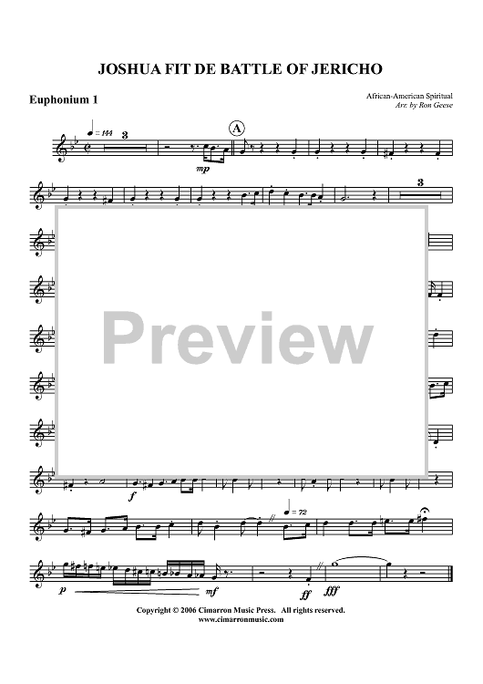 Digital Sheet Music for Joshua Fit De Battle of Jericho - Euphonium 1 BC/TC by Ron Geese, African American Spiritual scored for Tuba Quartet; id:360322