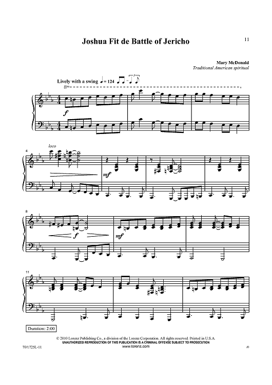 Digital Sheet Music for Joshua Fit de Battle of Jericho by Traditional American Spiritual, Mary McDonald scored for Piano Solo; id:433637