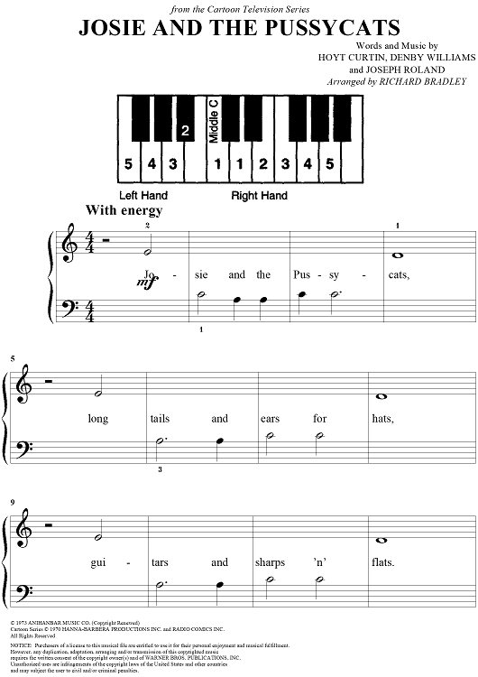 Digital Sheet Music for Josie and the Pussycats by Hoyt Curtin, Denby Williams, Joseph Roland, Richard Bradley scored for Five Finger Piano; id:283385