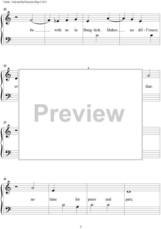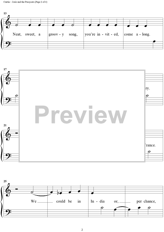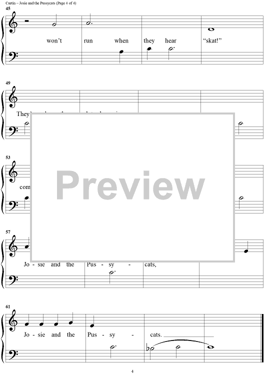 "Josie and the Pussycats" Sheet Music by Hoyt Curtin