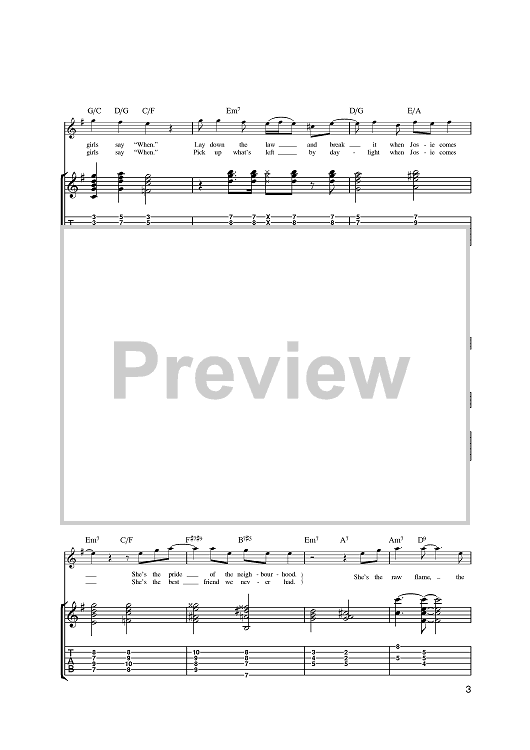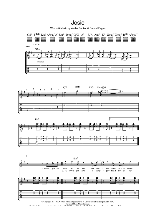 Digital Sheet Music for Josie by Steely Dan, Donald Fagen, Walter Becker scored for Guitar Tab; id:396222