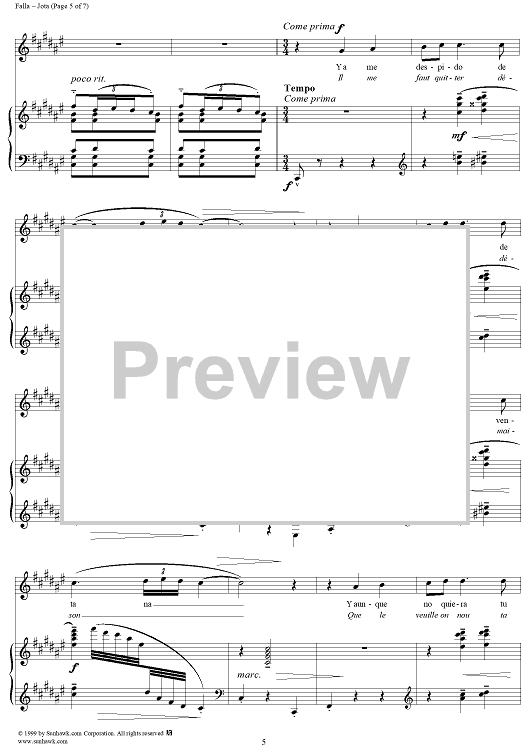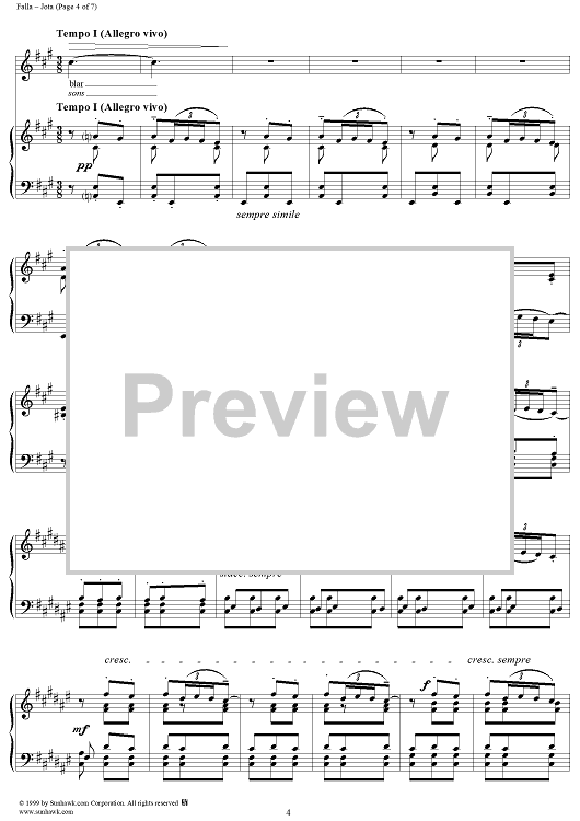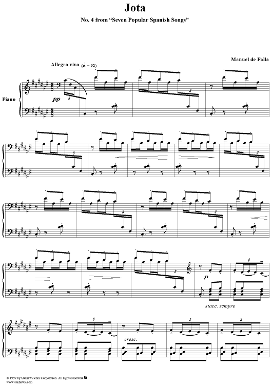 Digital Sheet Music for Jota by Manuel De Falla scored for Piano/Vocal; id:119287