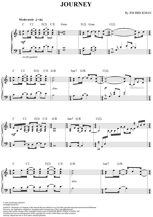 Digital Sheet Music for Journey by Jim Brickman scored for Piano Solo; id:284505