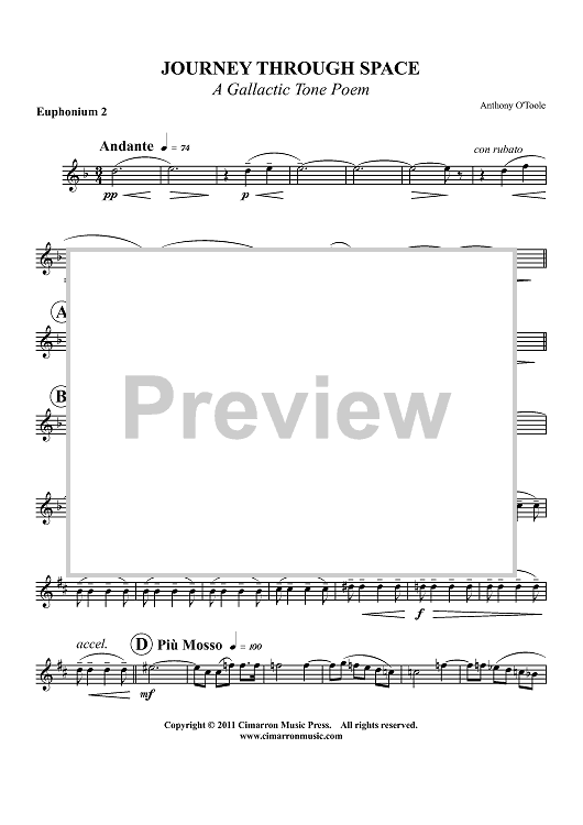 Digital Sheet Music for Journey Through Space - Euphonium 2 BC/TC by Anthony O'Toole scored for Tuba Ensemble; id:427624