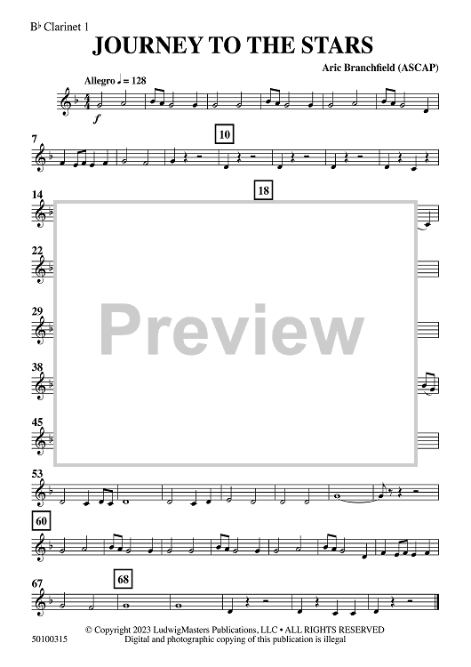 "Journey to the Stars - Clarinet 1" Sheet Music by Aric Branchfield