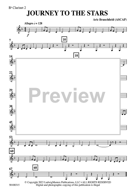 "Journey to the Stars - Clarinet 2" Sheet Music by Aric Branchfield