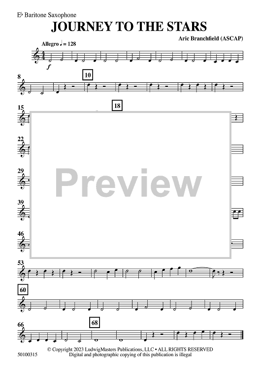 "Journey to the Stars - Eb Baritone Saxophone" Sheet Music by Aric Branchfield