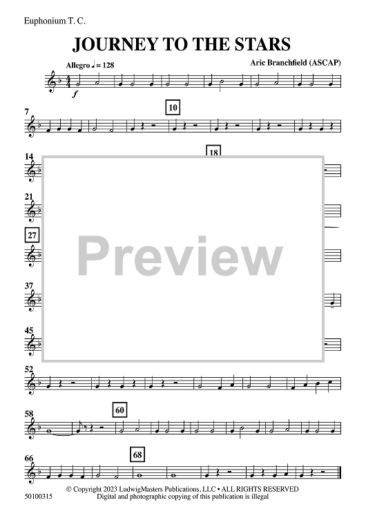 Digital Sheet Music for Journey to the Stars - Euphonium TC by Aric Branchfield scored for Concert Band; id:509680