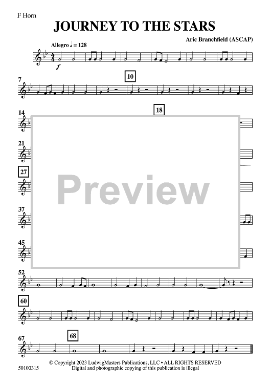 Digital Sheet Music for Journey to the Stars - F Horn by Aric Branchfield scored for Concert Band; id:509678