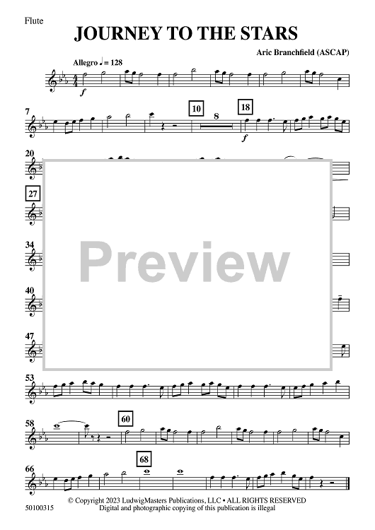 Digital Sheet Music for Journey to the Stars - Flute by Aric Branchfield scored for Concert Band; id:509666