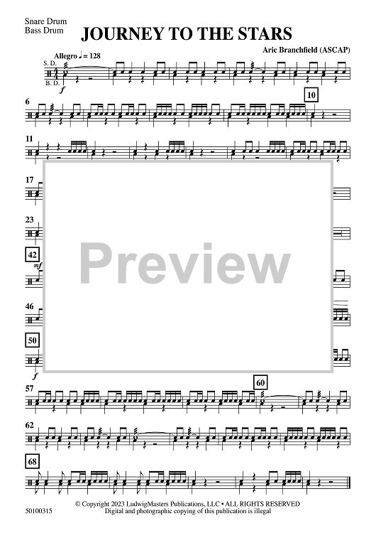 Digital Sheet Music for Journey to the Stars - Snare Drum / Bass Drum by Aric Branchfield scored for Concert Band; id:509683