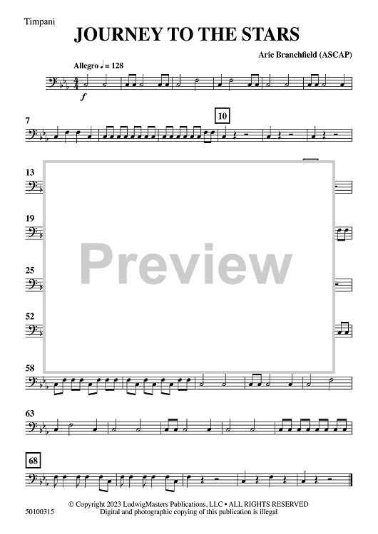 Digital Sheet Music for Journey to the Stars - Timpani by Aric Branchfield scored for Concert Band; id:509682