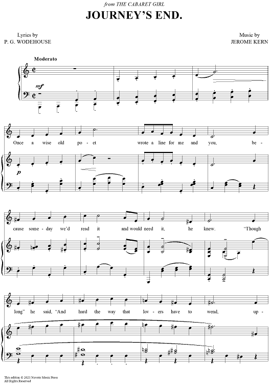 Digital Sheet Music for Journey's End by Jerome Kern, P.G. Wodehouse scored for Piano/Vocal; id:422415