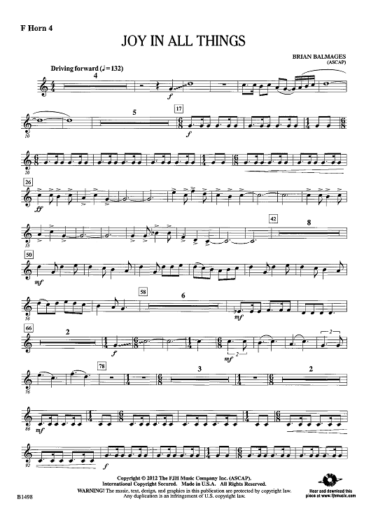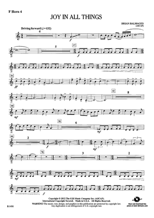 Digital Sheet Music for Joy in All Things - F Horn 4 by Brian Balmages scored for Concert Band; id:438588
