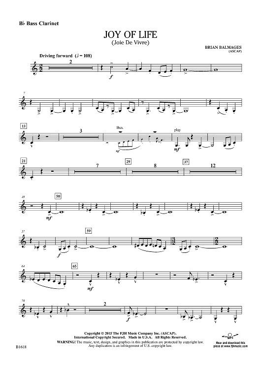 Digital Sheet Music for Joy of Life (Joie de Vivre) - Bb Bass Clarinet by Brian Balmages scored for Concert Band; id:454544