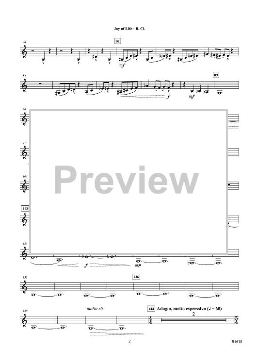 "Joy of Life (Joie de Vivre) - Bb Bass Clarinet" Sheet Music by Brian Balmages