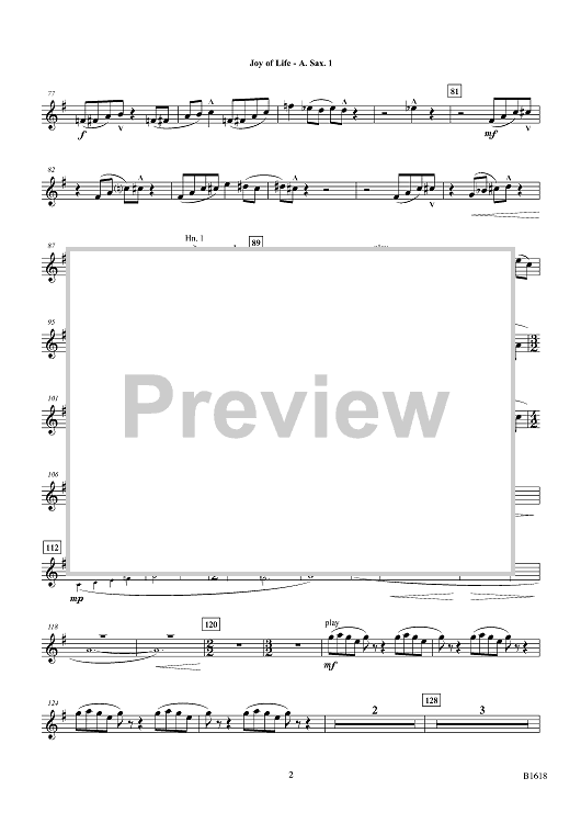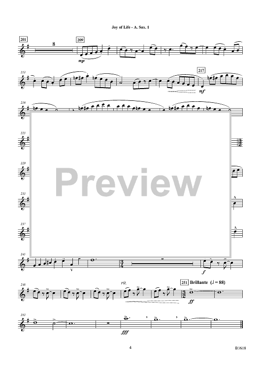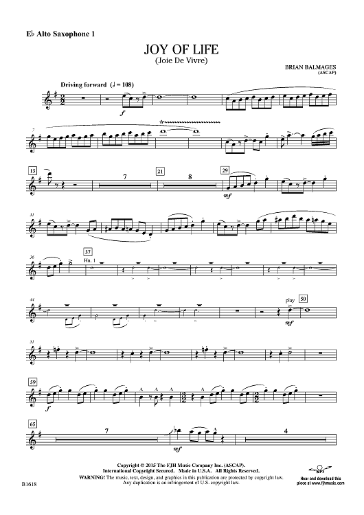 Digital Sheet Music for Joy of Life (Joie de Vivre) - Eb Alto Sax 1 by Brian Balmages scored for Concert Band; id:454546