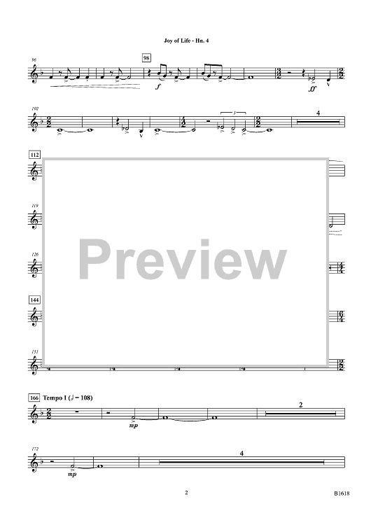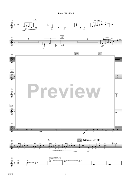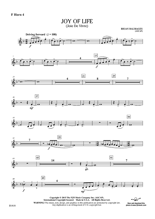 Digital Sheet Music for Joy of Life (Joie de Vivre) - F Horn 4 by Brian Balmages scored for Concert Band; id:454556