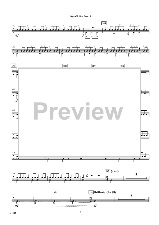 Digital Sheet Music for Joy of Life (Joie de Vivre) - Percussion 1 by Brian Balmages scored for Concert Band; id:454565