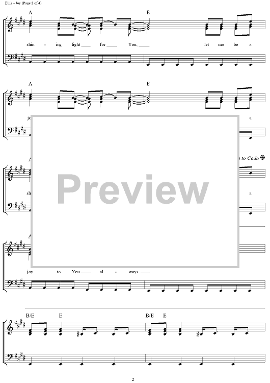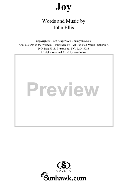 Digital Sheet Music for Joy by John Ellis scored for Piano/Vocal/Chords; id:207001