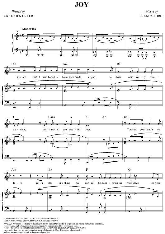 Digital Sheet Music for Joy by Nancy Ford, Gretchen Cryer, Cryer and Ford scored for Piano/Vocal/Chords; id:269641