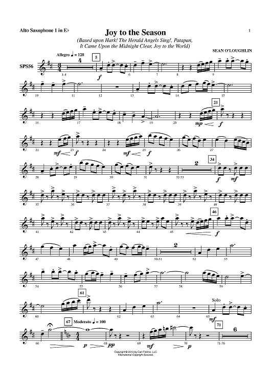 "Joy to the Season - Alto Saxophone 1" Sheet Music by Sean O'Loughlin