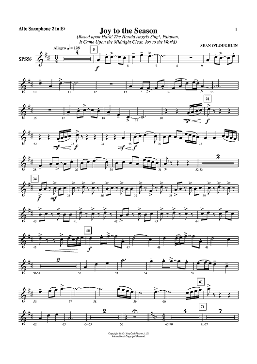 "Joy to the Season - Alto Saxophone 2" Sheet Music by Sean O'Loughlin