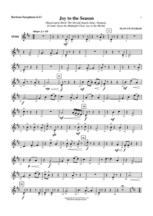 "Joy to the Season - Baritone Sax" Sheet Music by Sean O'Loughlin