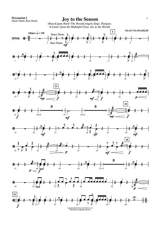 "Joy to the Season - Percussion 1" Sheet Music by Sean O'Loughlin