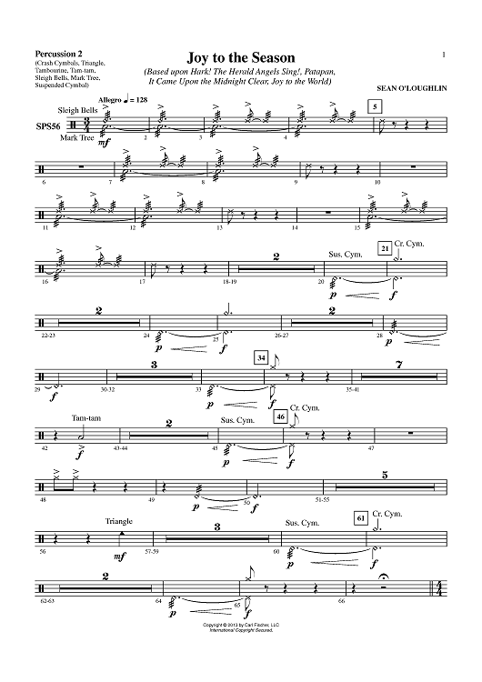 "Joy to the Season - Percussion 2" Sheet Music by Sean O'Loughlin