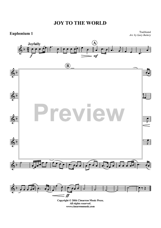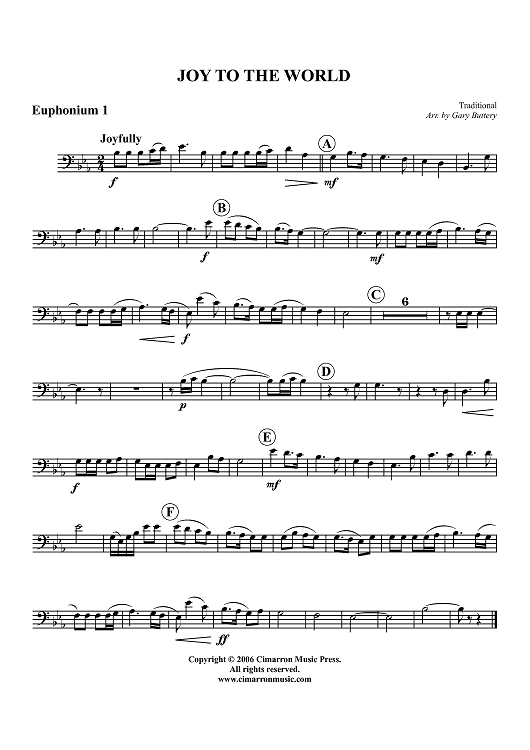 Digital Sheet Music for Joy to the World - Euphonium 1 BC/TC by , Gary Buttery, Traditional scored for Tuba Ensemble; id:358327